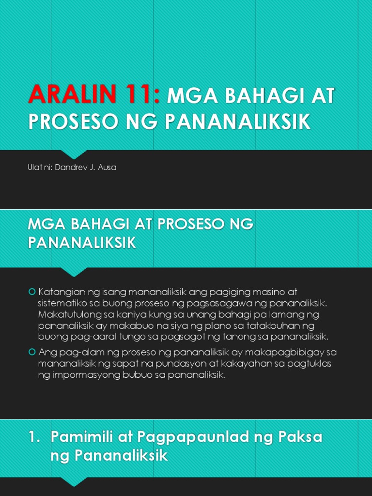 Aralin 11 Mga Bahagi At Proses Ng Pananaliksik