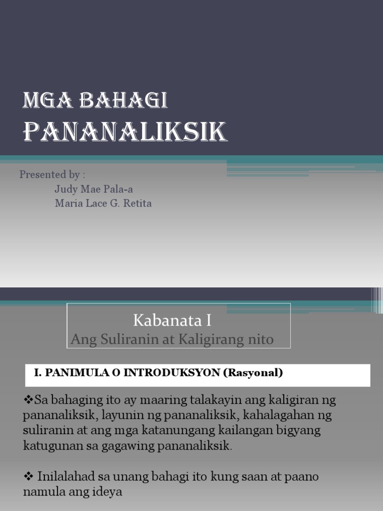 Mga Bahagi Ng Pananaliksik Ccs Baby Pptx