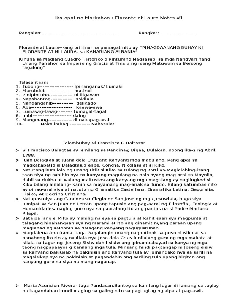 Start studying 4th Quarter Filipino - Florante at Laura Intro. Laura 53 Ano ang ngalan ng kaaway na mahigpit ng relihiyong Kristiyano at ng bayan ni Florante. Ito ang ngalan ko mula pagkabata nagisnan sa amat inang nag-andukha.