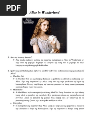 Ang Alice in the Country of Hearts ハートの国のアリス Wonderful Wonder World Hāto no Kuni no Arisu Wonderful Wonder World ay isang Hapones na nobelang biswal na may romansa at paglalakbay na tema at isa ring pambabaeng laro na binuo ng Quin RoseIniimahe muli ng larong ito ang mga klasiko ni Lewis Carroll na Alices Adventures in Wonderland. Contextual translation of ano ang tema ng kwento ng alice in wonderland. Mga tanong sa Tagalog Jose Rizal Filipino Language and Culture.