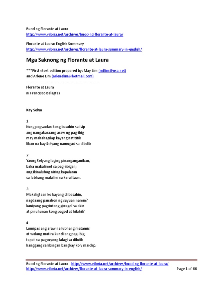 Pinagdaanang Buhay nina Florante at Laura sa Kahariang Albanya. Adapted from some. Kung sa pagbasa moy may tulang malabo bago mo hatulang katkatin at liko pasuriin muna ang luwasat hulo at makikilalang malinaw at wasto.